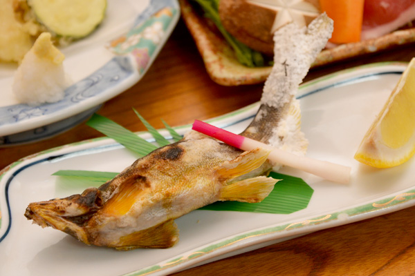 ※別注にて、鹿の刺身、鮎の塩焼きなど地元の味覚のほか、海鮮のお造りなども別途料金にてご用意可能です。ご予約時にご注文ください。